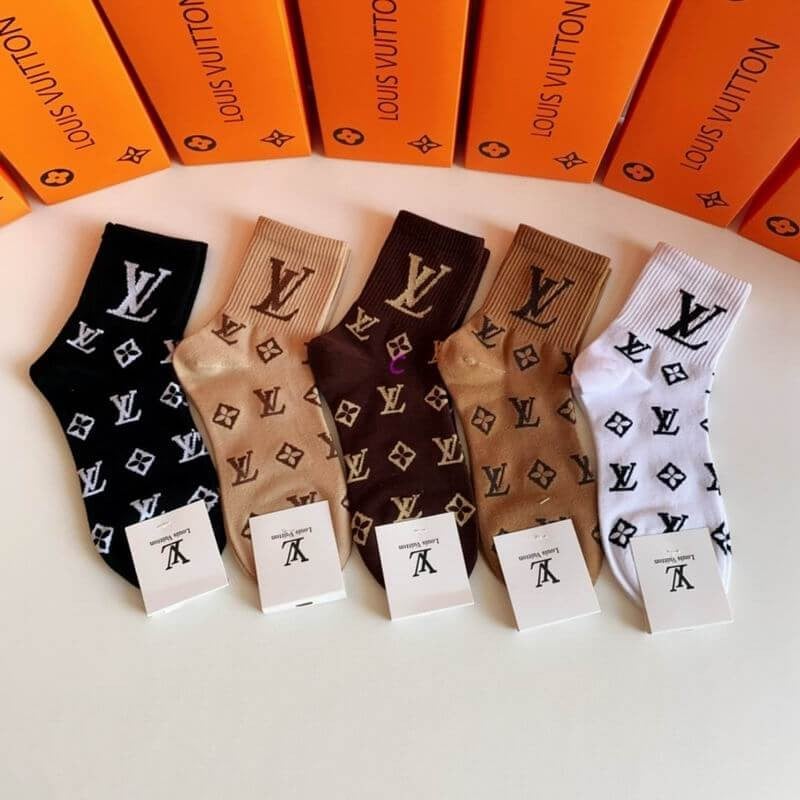 LV socks | طقم جوارب لويس فيتون متوسطة من 5 قطع