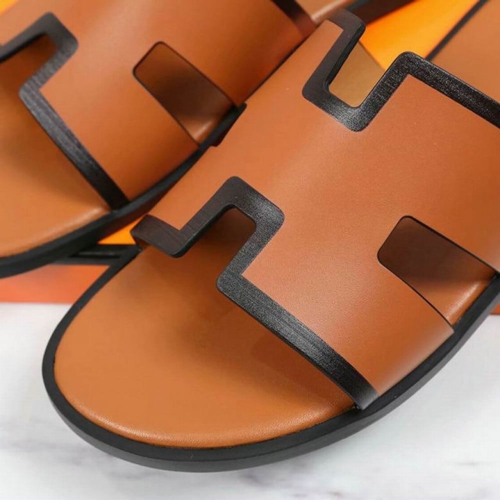 صندل هيرميس مصنوع من جلد العجل مزين بفتحة حرف "H" الأيقونية ذات الحواف الخام. من طراز هيرميس الأيقوني ، هذه الصورة الظلية قطعة أساسية في كل خزانة ملابس.
