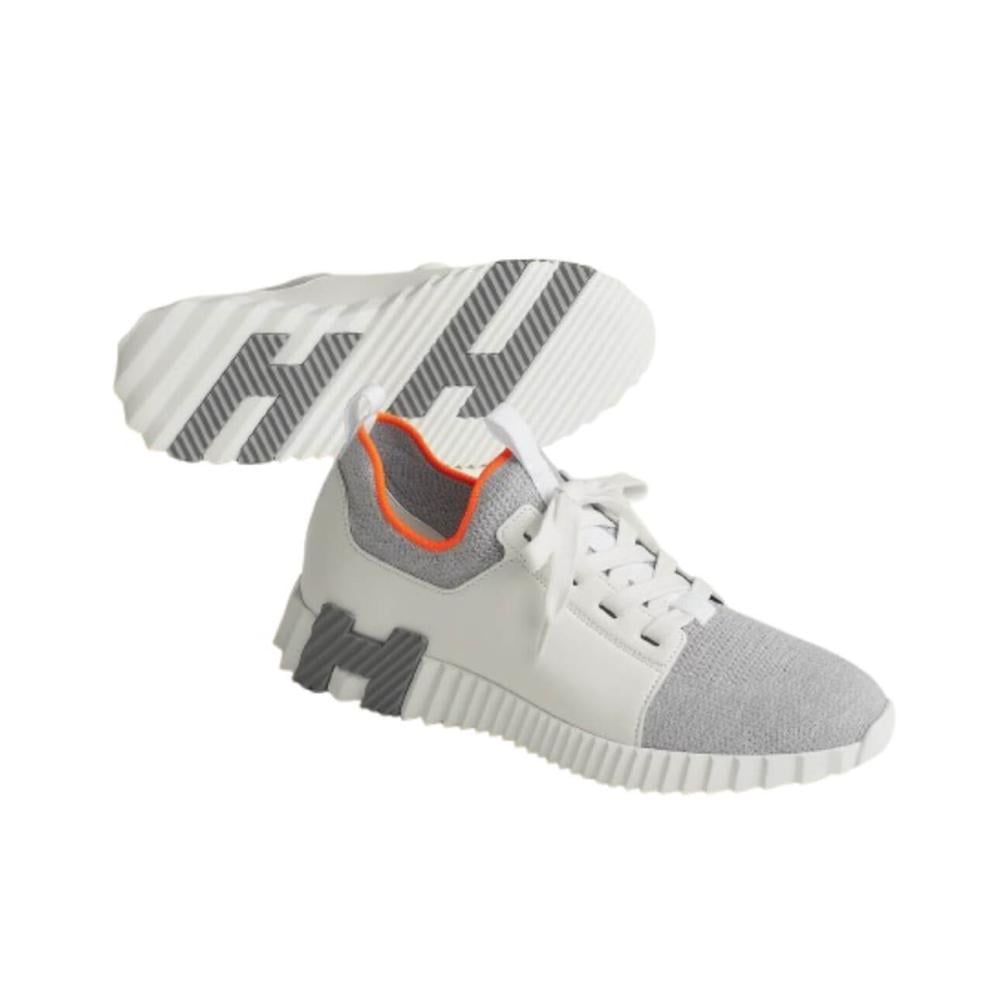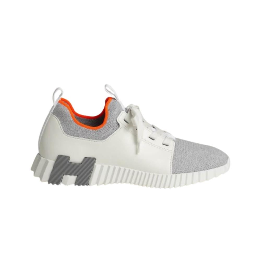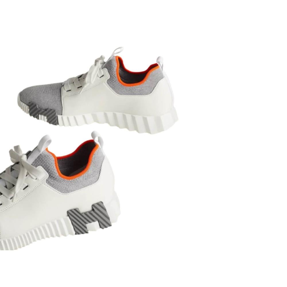 ارتقِ بإطلالتك اليومية مع هذا الحذاء الرياضي العصري من Hermès، بتصميم ديناميكي يجمع بين الأناقة الراقية والراحة المطلقة. يأتي بتدرجات الأبيض والرمادي مع لمسة برتقالية جريئة تضيف طابعًا مميزًا ولافتًا للنظر.